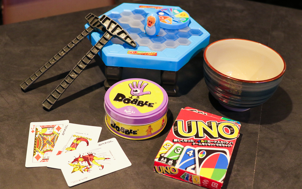 トランプやUNO、バランス感覚を鍛えるボードゲームなどみんなで楽しめるゲームをご用意しています。